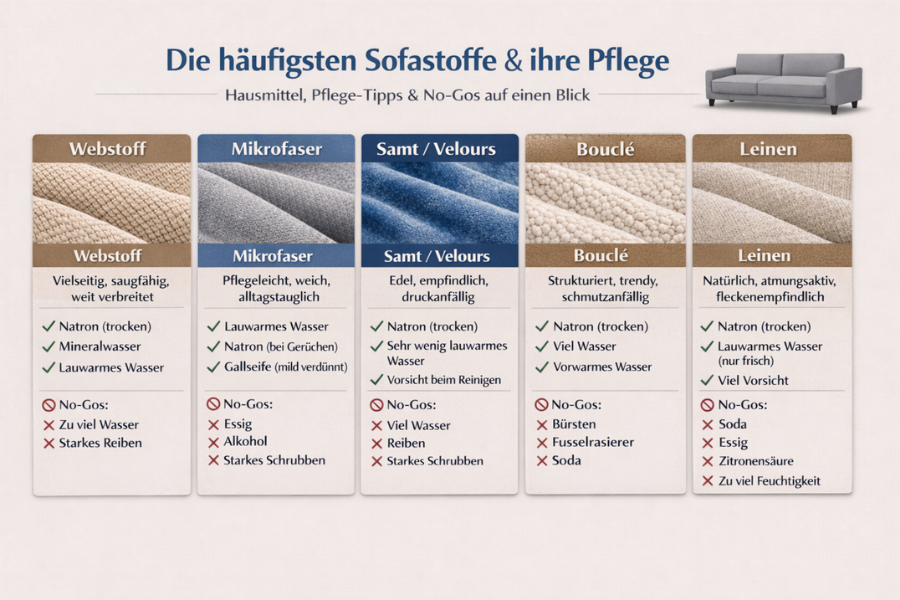 Die meisten Schäden entstehen nicht durch Nutzung, sondern durch falsche Reinigung. Wer sein Sofa richtig pflegen möchte, sollte zuerst verstehen was dem Material schadet.