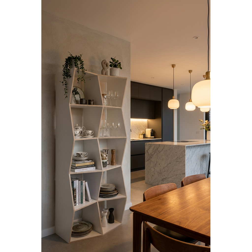 • Das minimalistische Regal MESH mit dem Aussehen einer Wabe lässt nicht nur die Nachbarn vor Neid erblassen, sondern selbst die Bienen der ganzen Gegend. Gleichzeitig bietet das Bücherregal ausreichend Platz für große und kleine Bücher, für CDs, Zimmerpflanzen, Familienfotos und allerlei Dekoelemente.