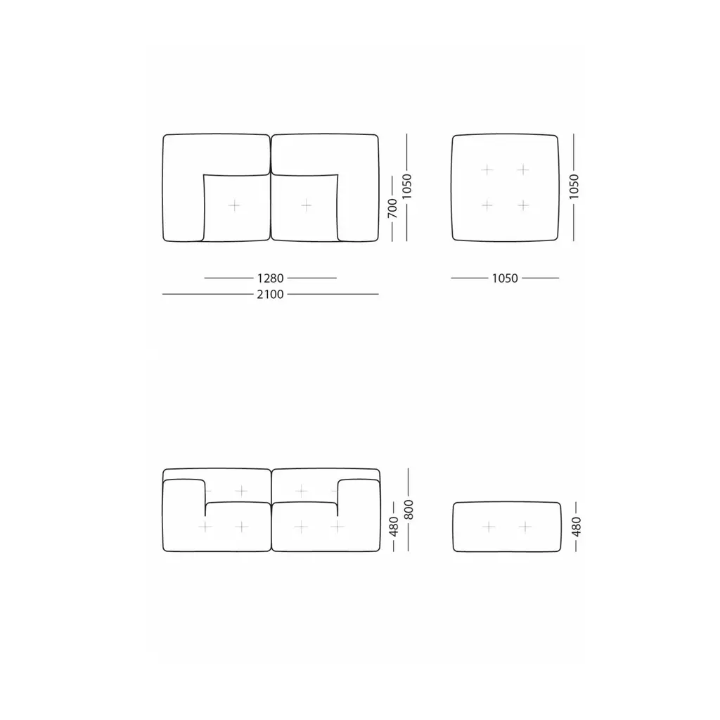 Maße des 2er-Sofas: Breite: 210 cm, Tiefe:105 cm, Höhe: 80 cm, Sitzhöhe: 48 cm. Erhältlich in 3 Farben.
