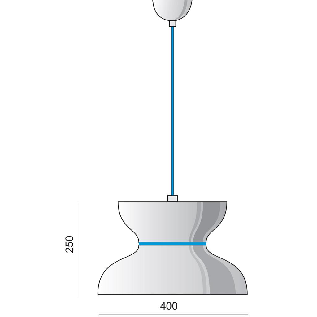 Die schwarze Pendelleuchte hat ein blaues Plexiglasring und blaues Textilkabel. Sie passt ideal als Hängelampe über den Esstisch, aber auch in alle anderen Zimmer, wo direktes Licht erwünscht ist. Oben ist sie mit Opalglas bedeckt, unten offen. Eine Mini Ball Leuchtstofflampe E27/18W wird mitgeliefert.