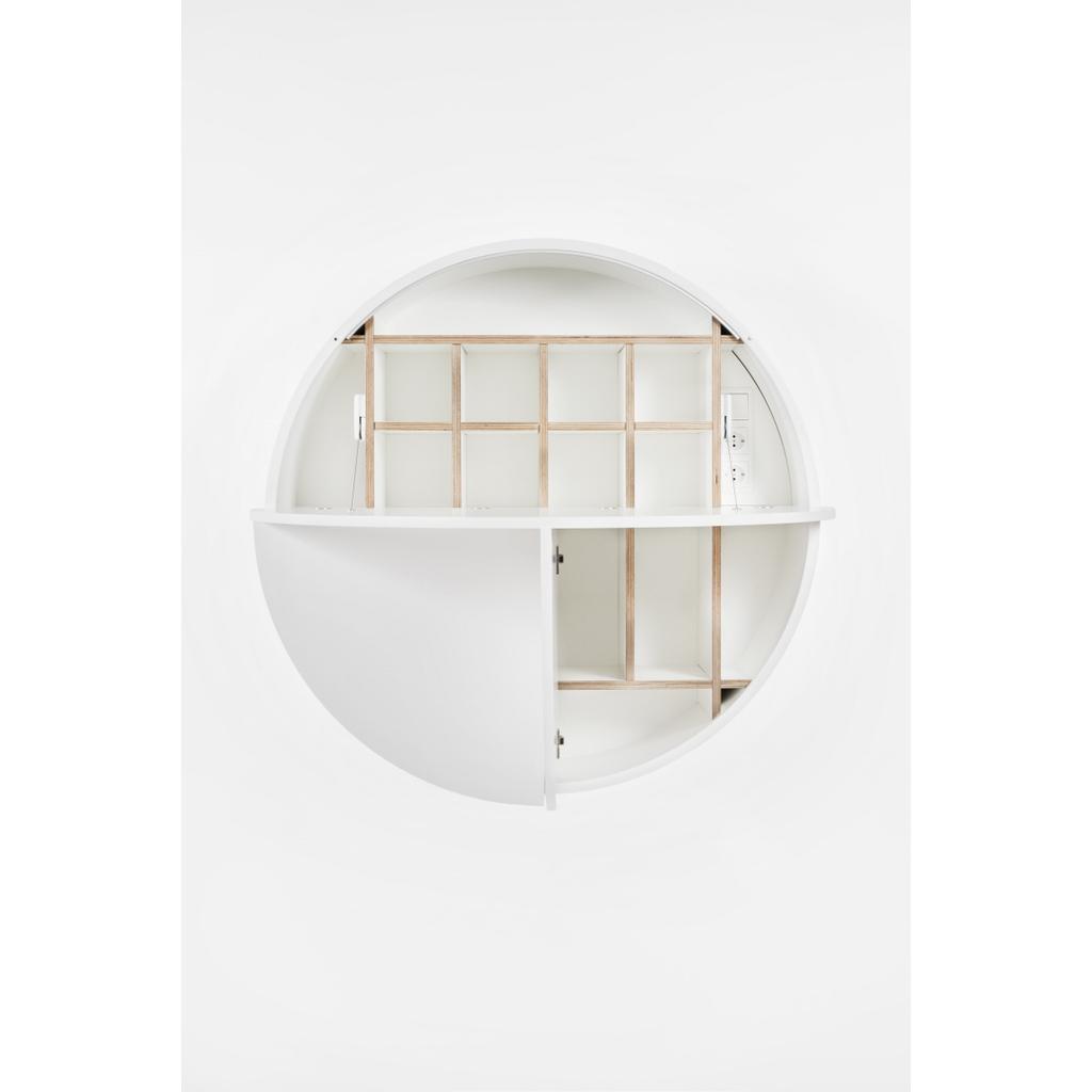 Der moderne Wandsekretär ist besonders geeignet für kleine Räume und bietet viele durchdachte Möglichkeiten, das Chaos am Arbeitsplatz in die kreative Bahnen zu lenken.