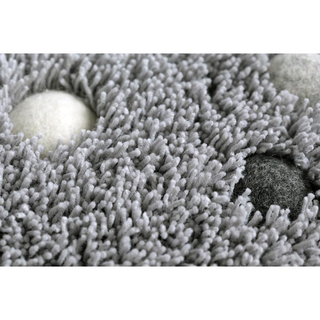 Der Wollteppich ist dank seines natürlichen Materials besonders warm und weich. Die originellen Filzbälle im Teppich machen aus ihm einen dekorativen Hingucker und massieren dabei ganz sanft die Fußsohlen. Die Massagewirkung ist spürbar, doch nicht unangenehm, da die Filzbälle tiefer sitzen als der Flor. Die Verteilung der Filzbälle ändert sich leicht je nach Teppichgröße und kann hier angesehen werden.